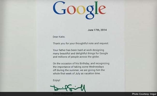 A little girl sent a Letter to Google asked that they provide her father with a day off to celebrate his birthday.